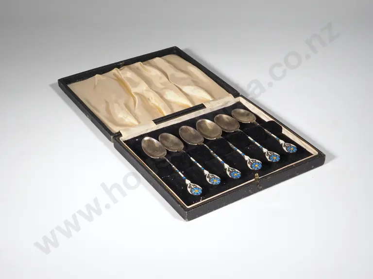 Box Set Of Six Sterling Silver & Enamel Coffee Spoons Estimate: $100 - $200