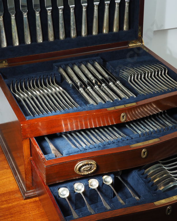 1864 Chawner & Co (George William Adams) 12 Place Sterling Silver Cutlery Set Estimate: $6,000 - $8,000