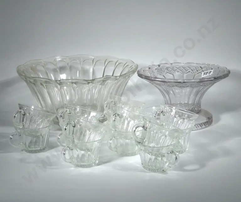 Glass Punch Bowl & Cups & Another Glass Bowl Estimate: $40 - $60