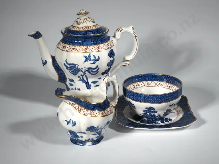 Booths " Real Old Willow Square Plate, Milk Jug, Sugar Bowl & Coffee Pot Estimate: $30 - $50