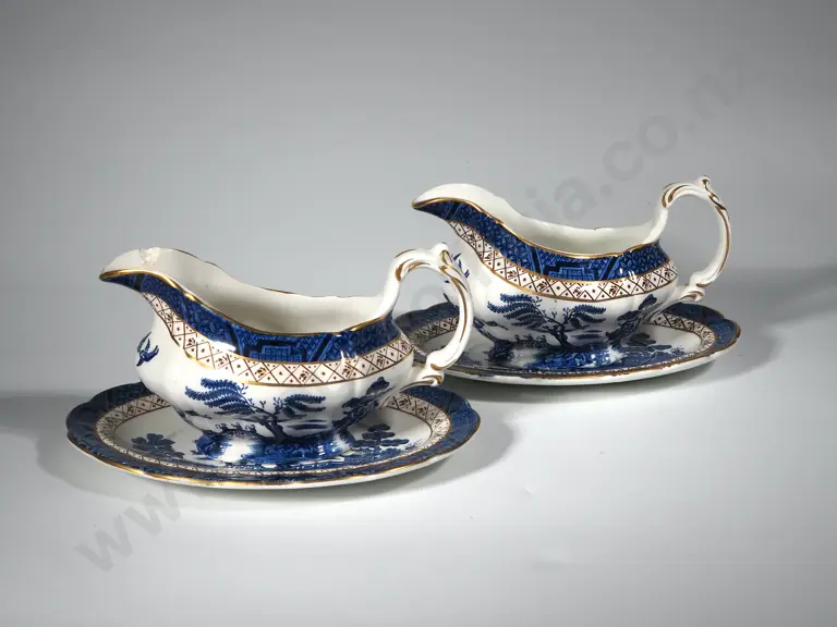 Two Booths " Real Old Willow" Gravy Boats With Under Saucers (One A/F) Estimate: $30 - $50