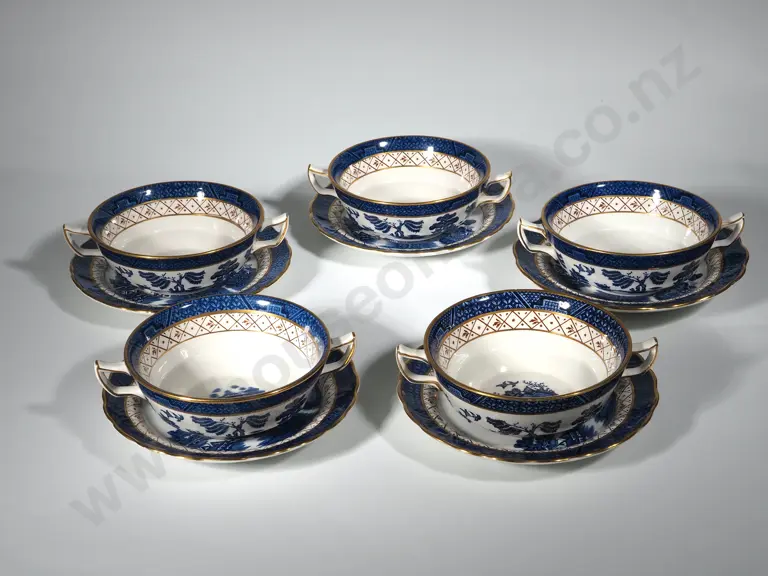 Five Soup Double Handles Six Booths " Real Old Willow" Soup Bowls Estimate: $40 - $60