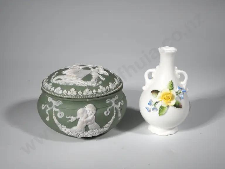 Small Coalport Vase & Minton Style Green & White Trinket Box Estimate: $30 - $50