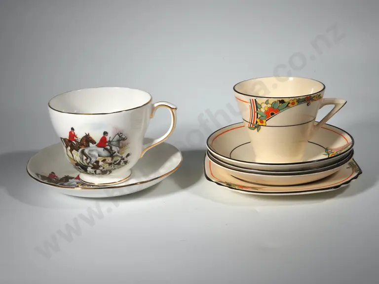 Breakfast Cup & Saucer w/ Hunting Scene & Trio w/ Two Saucers Estimate: $50 - $80