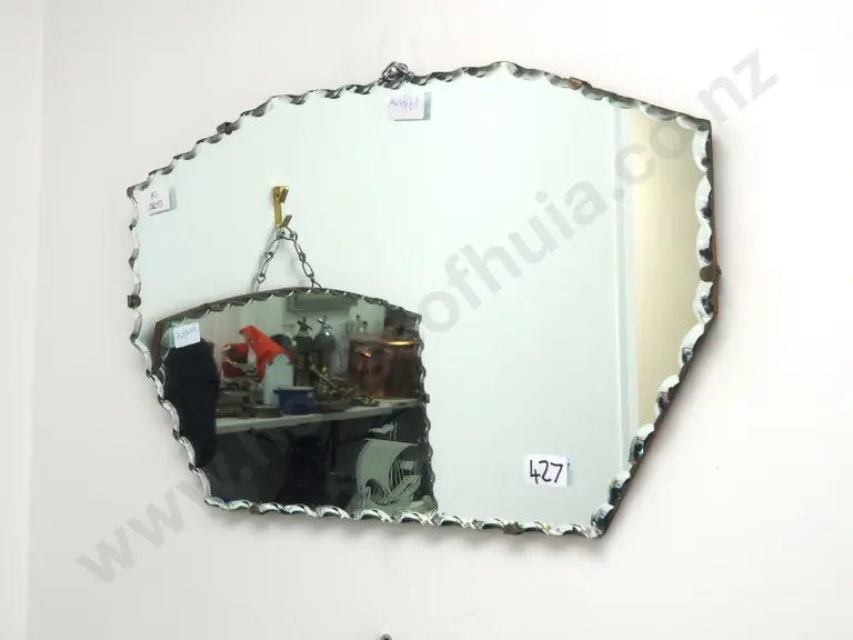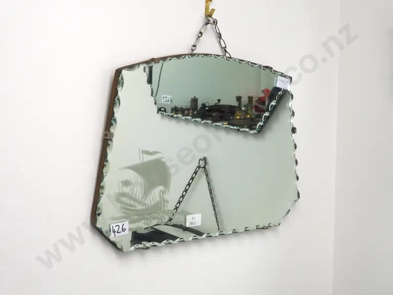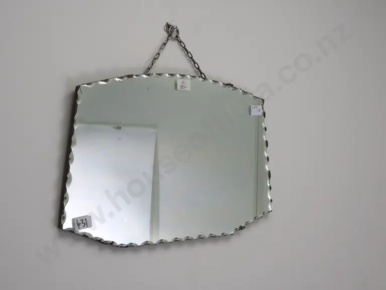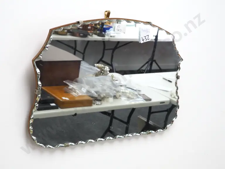 Art Deco Wood Mounted Mirror w Scalloped Edges Estimate: $80 - $120
