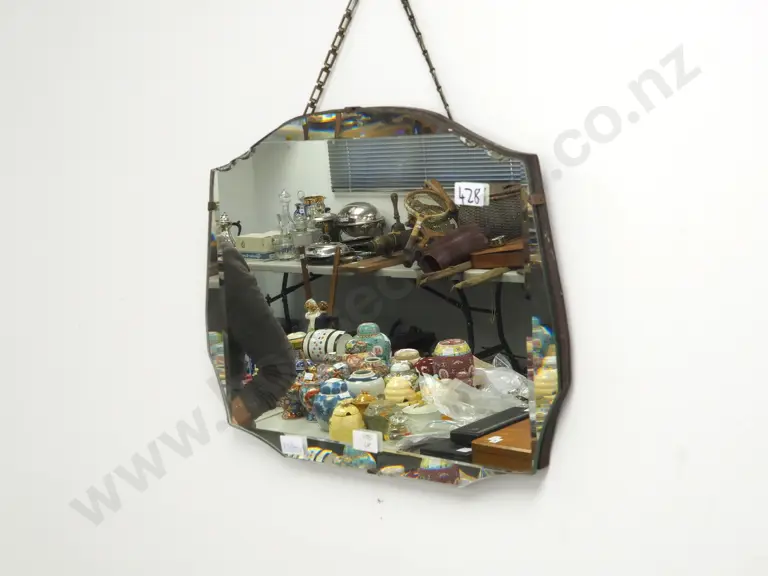 Art Deco Wood Mounted Mirror w Bevelled Edge Estimate: $80 - $120