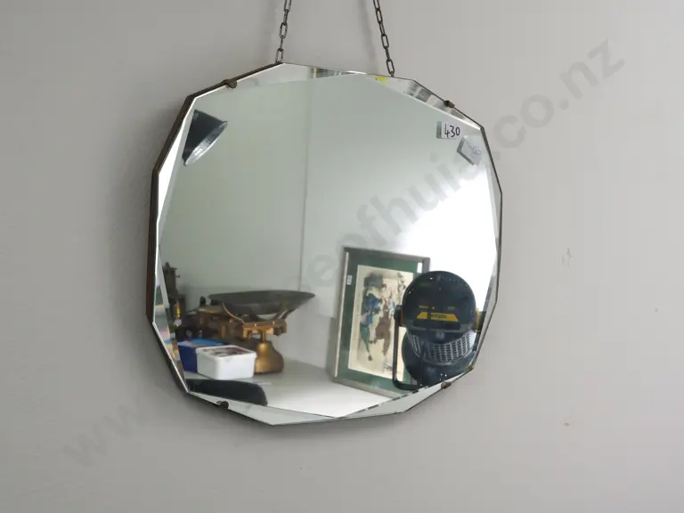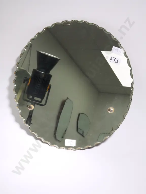 Circular Art Deco Wood Mounted Mirror w Scalloped Edges Estimate: $80 - $120
