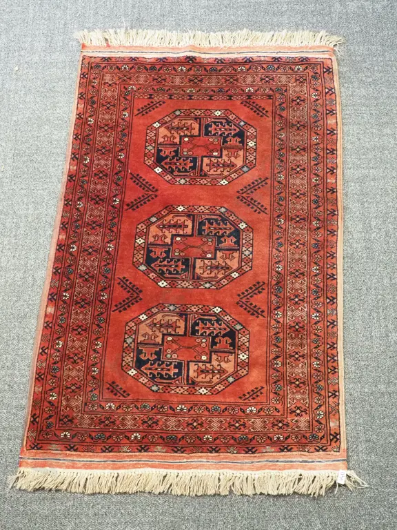 Red Ground Hand Knotted Rug With Geometric Pattern Estimate: $300 - $400