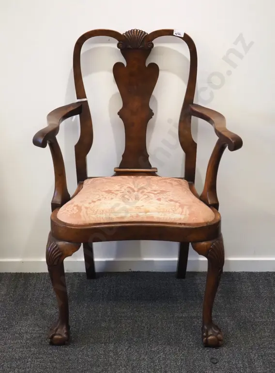 George II Walnut Carver Chair with Ball & Claw Feet Estimate: $100 - $200