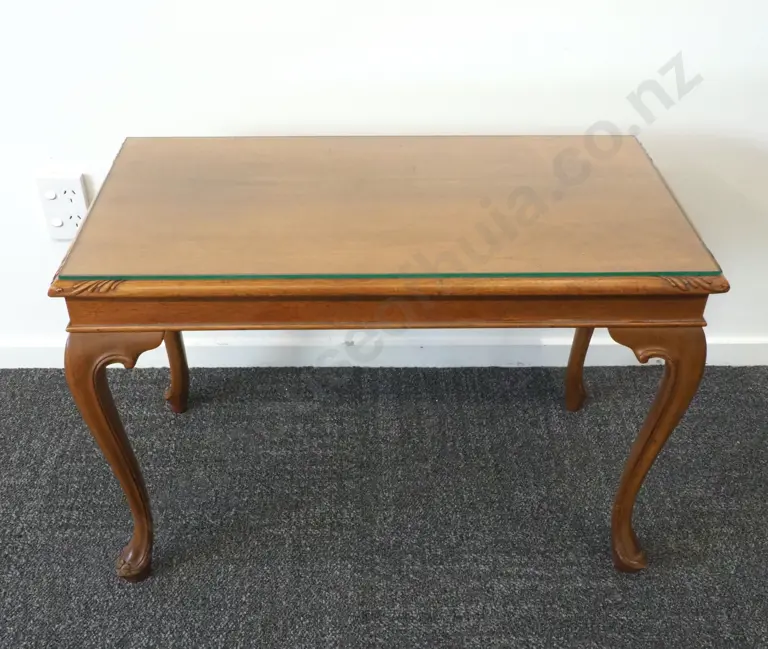 Rectangular Mahogany Coffee Table On Four Cabriole Legs With Glass Top Estimate: $200 - $500