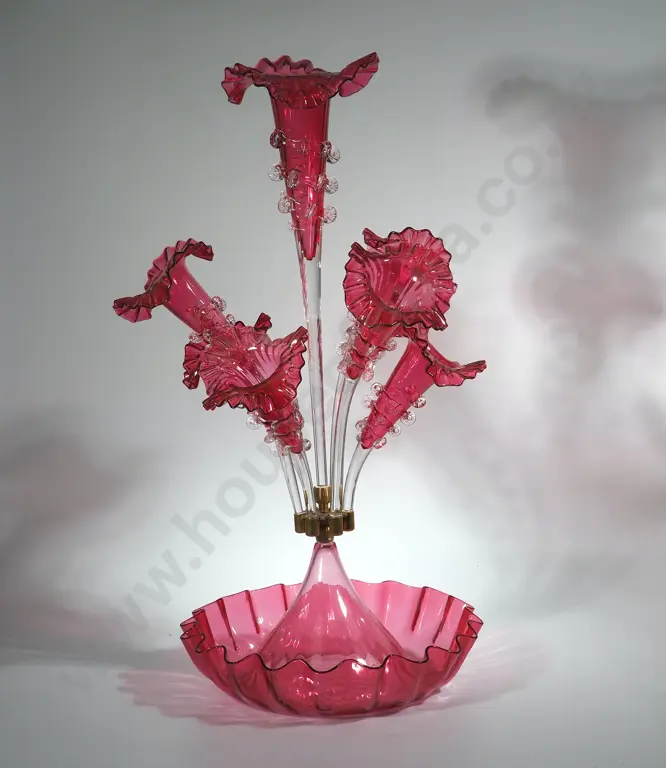 Large Cranberry Glass Epernge w Spare Branch Estimate: $150 - $250