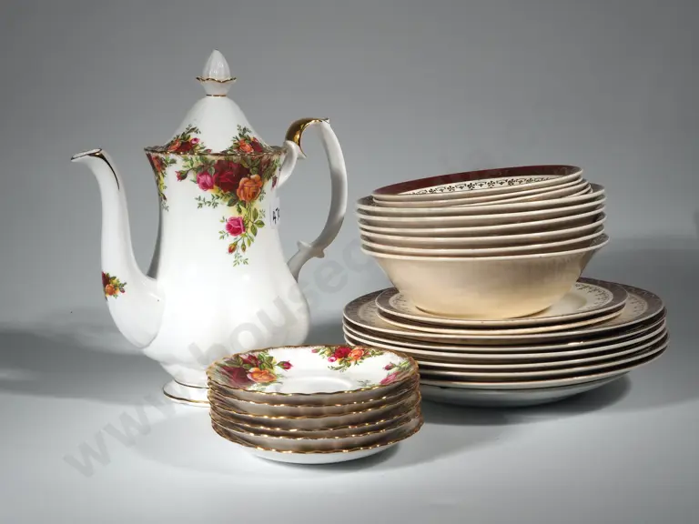 Royal Albert Coffee Pot - Old Country Rose & Six Saucers & Assorted Lot of Alfred Meakin China Estimate: $80 - $120