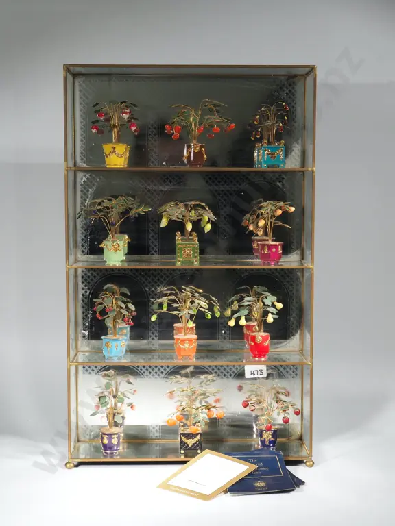 Czarina's Orchird - House of Faberge Shadow Glass Box w Imperial Pomegranate Tree Ornaments Display Estimate: $100 - $200