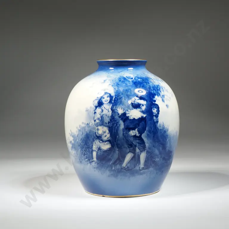 Royal Doulton Blue Children Vase Of Ovoid Form Depicting Three Children Under A Tree Playing Blind Man's Buff
