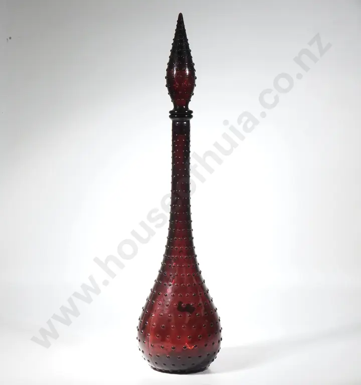 Mid Century Italian Amethyst Coloured Empoli Glass Genie Bottle w A Bubble Pattern