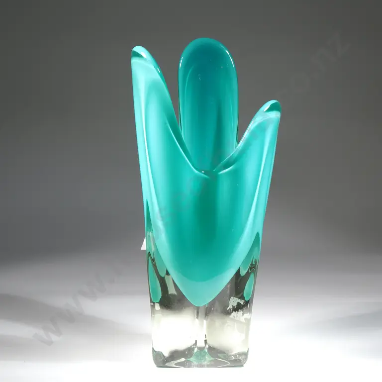 Vintage Turquoise Blue Japanese Iwatsu Fazzoletto Trilobe Vase