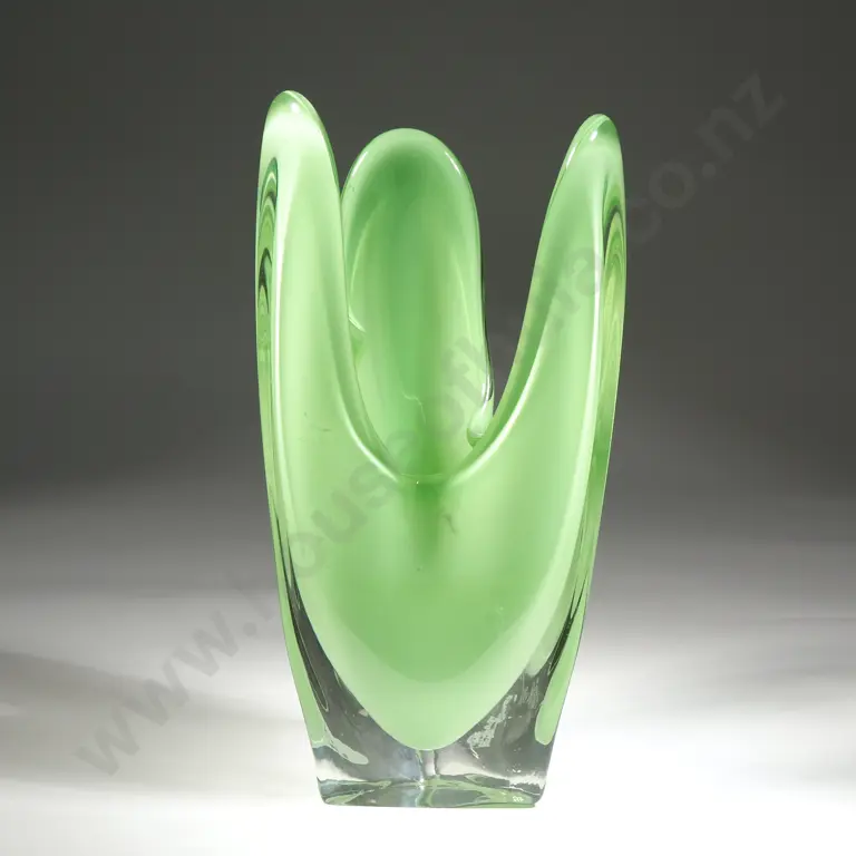 Vintage Hineri Iwatsu Pastel Green Trilobe Glass Vase