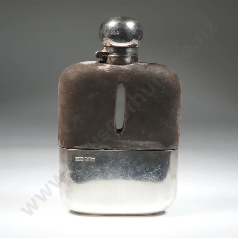 Sterling Silver & Glass Hip Flask w Detachable Cup - London 1930