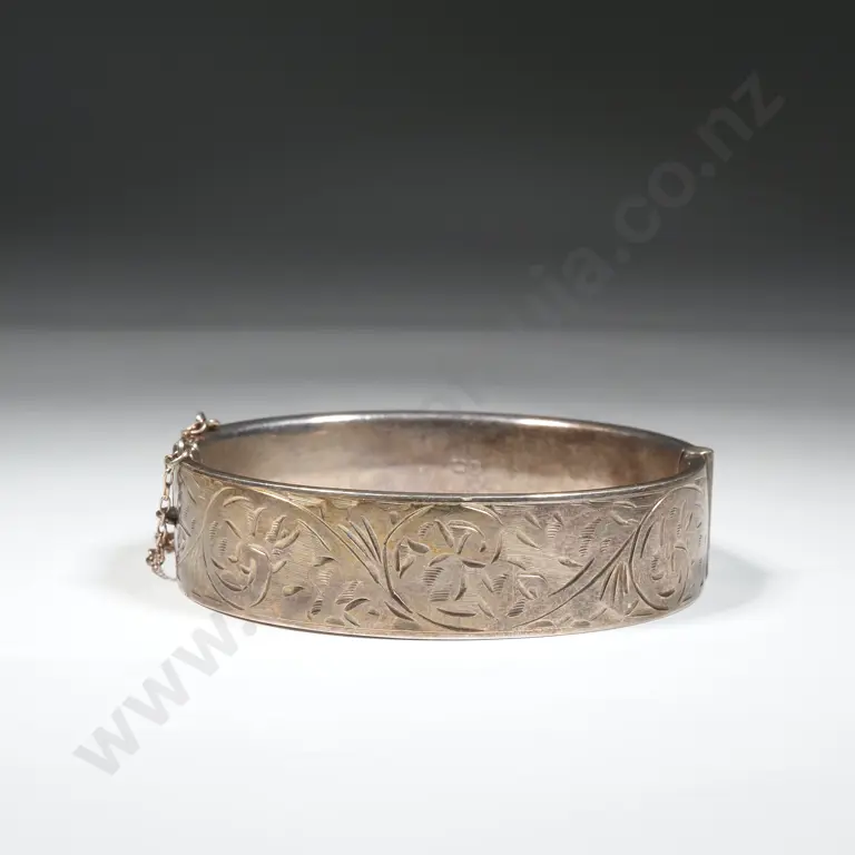 Sterling Silver Hinged Bangle w Scroll Engraving