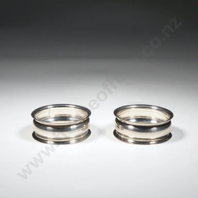 Good Pair Of Hexagonal Sterling Silver Engine Turned Napkin Rings