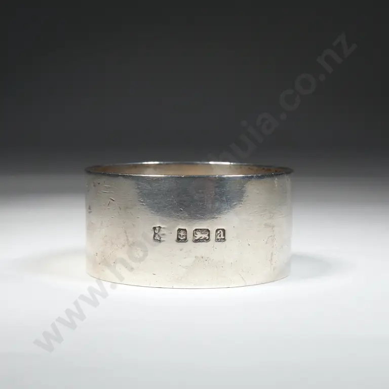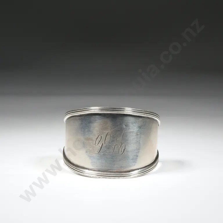 Sterling Silver Half Moon Serviette Ring With Ribbed Rim - Initialed DM