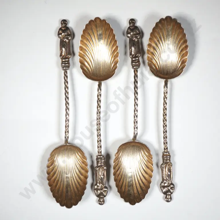 Four Sterling Silver Apostle Spoons w Shell Bowls