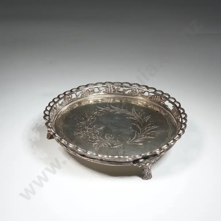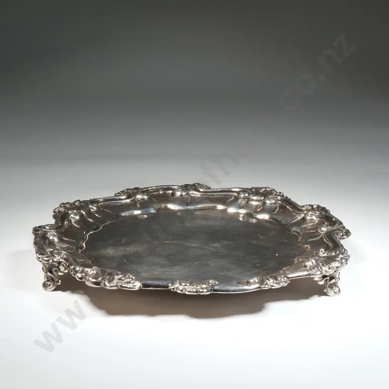 Sterling Silver Salver with Scalloped Shaped Gadrooned Rim With Scrolls & Acanthus Leaves On Three Scroll Feet