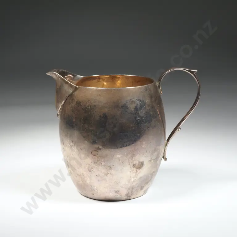 Georgian Style Plain Body Sterling Silver Pear Shaped Cream Jug On three Pad Feet