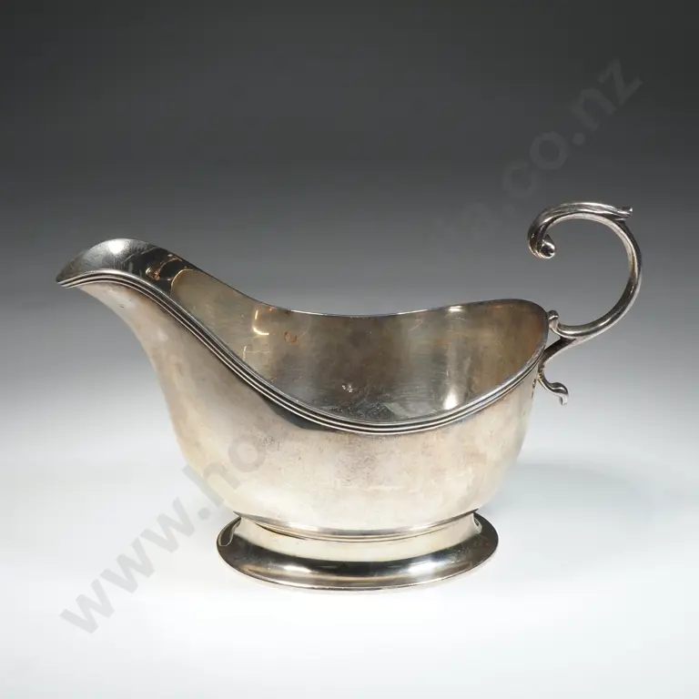 Sterling Silver Sauce Boat w Flying Scroll Handle - Birm 1935 - Maker Charles Packer & Co Ltd