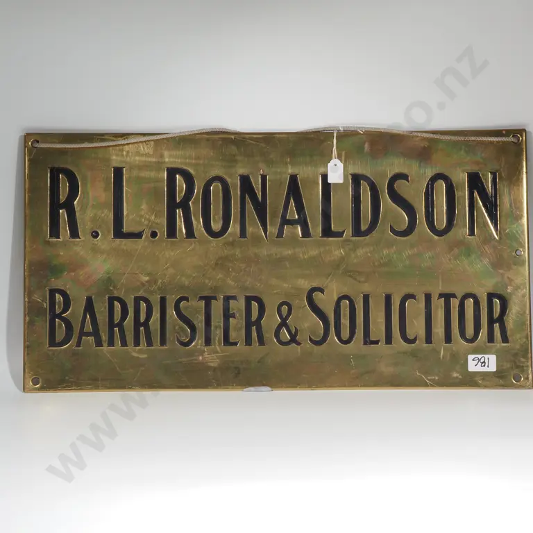 Vintage Brass Plaque "R L Ronaldson Barrister & Solicitor" - Moller & Young Christchurch