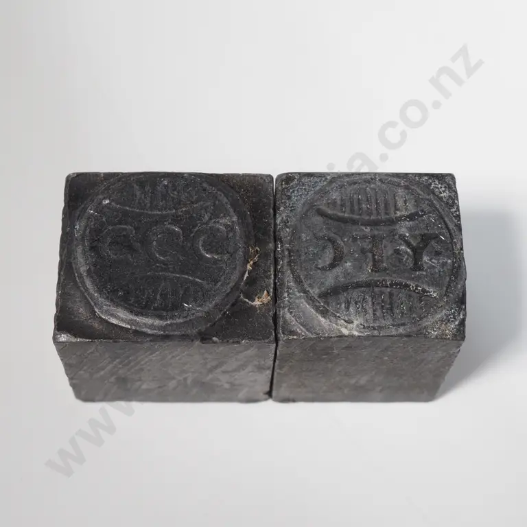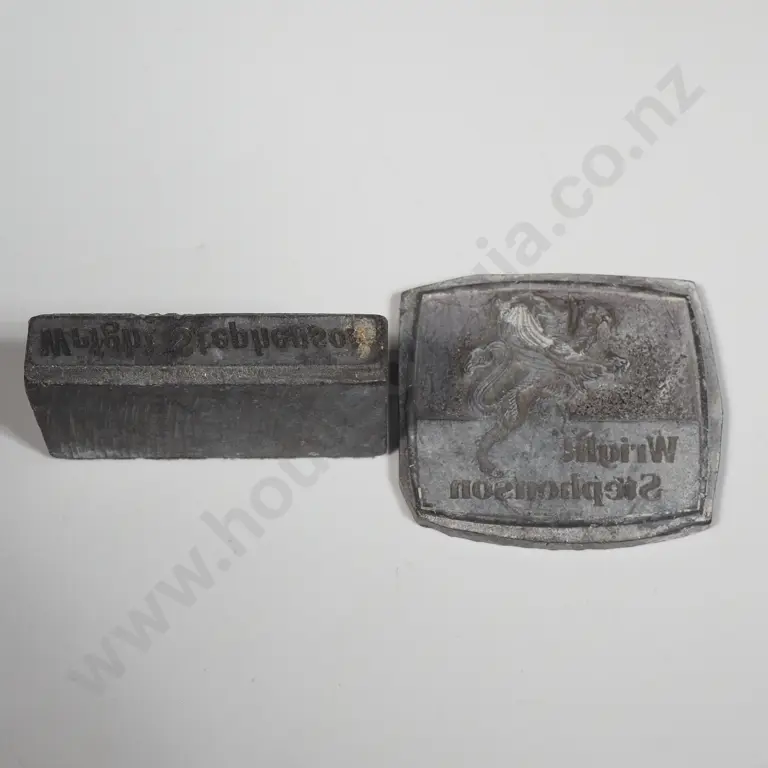 Two Vintage Letterpress Printing Blocks Or Dies Marked " Wright Stephenson"