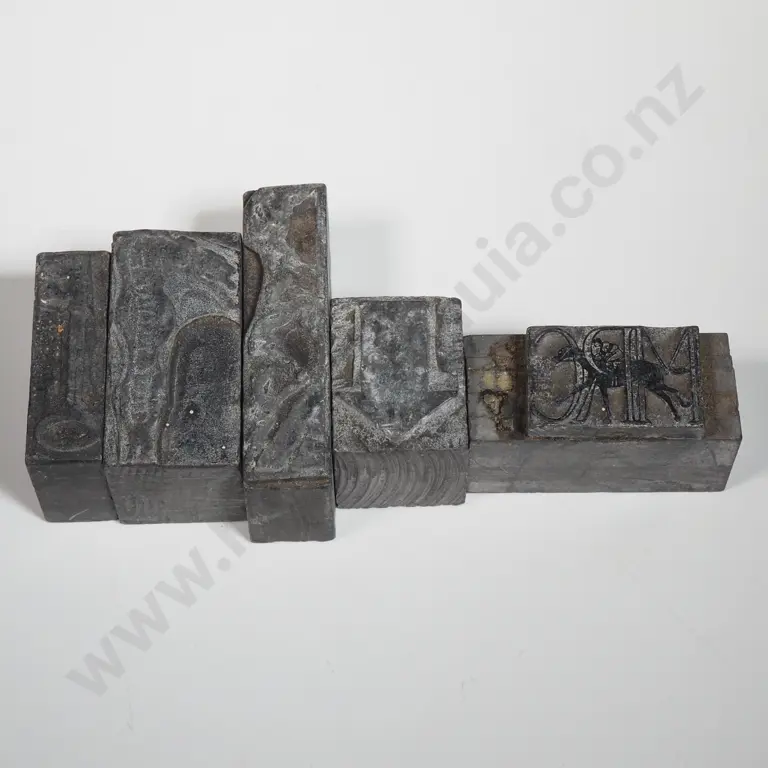Five Various Vintage Letterpress Printing Blocks Or Dies - One w Jockey On Horse - Arrow