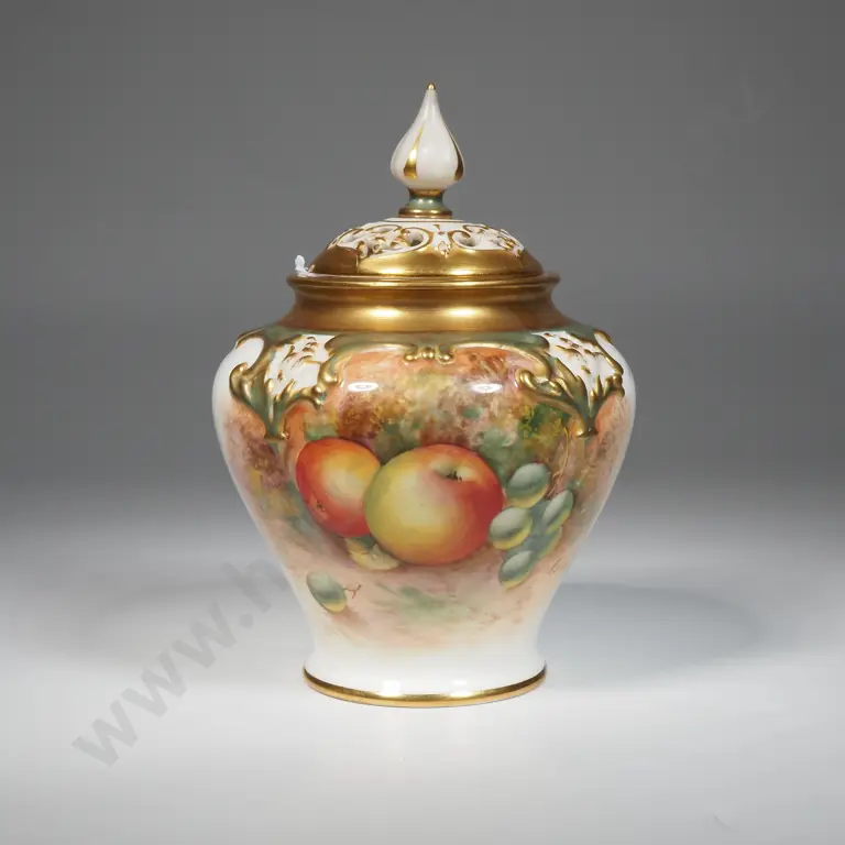 Royal Worcester Pot Pourri - Featuring Apples & Grapes - Signed By Roberts - Black Mark