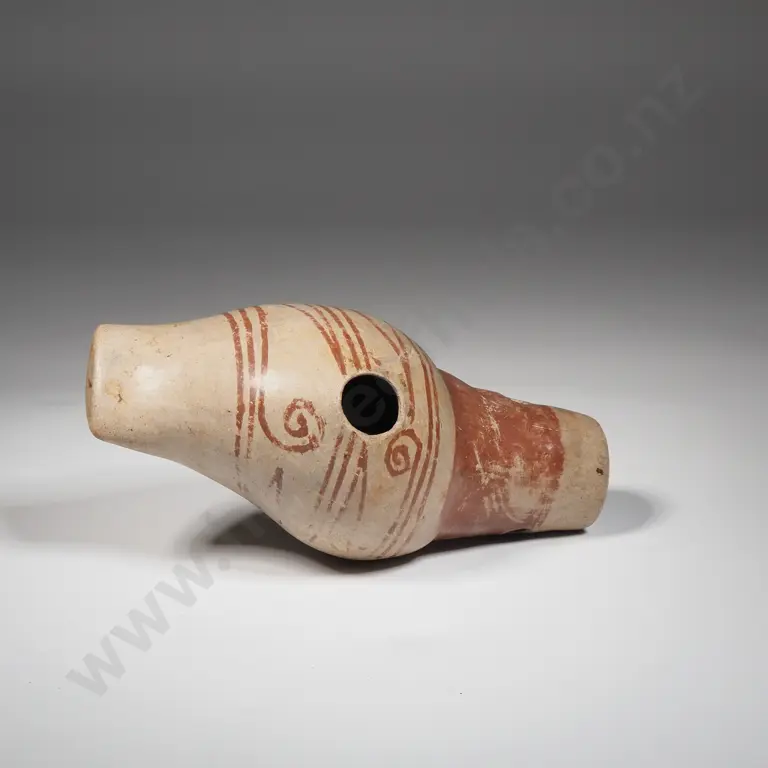 Pre-Colombian Hand Painted Terracotta Pottery Whistle From Cali, Columbia