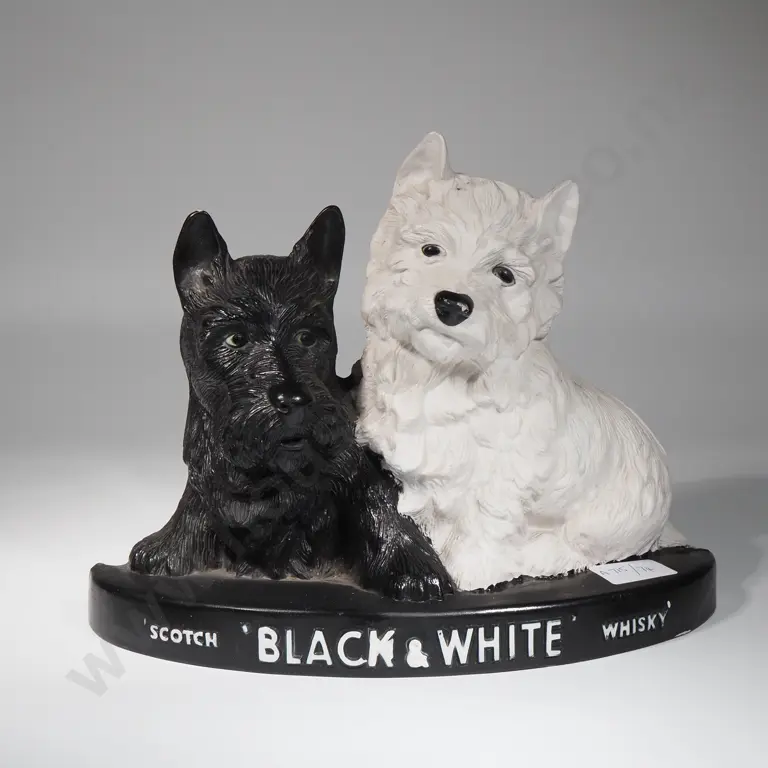 Vintage Wall Hung Advertising Sign Of Two Scottish Terrier Dogs - The Mascots For Black & White Whisky