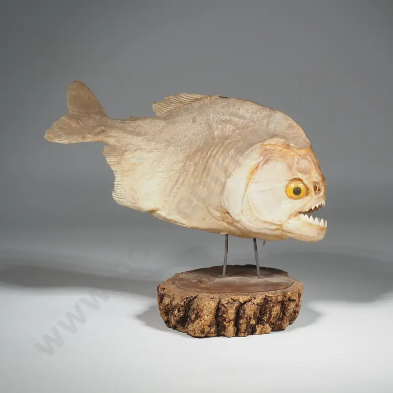 Taxidermied Specimen Red-Bellied Piranha On Stand