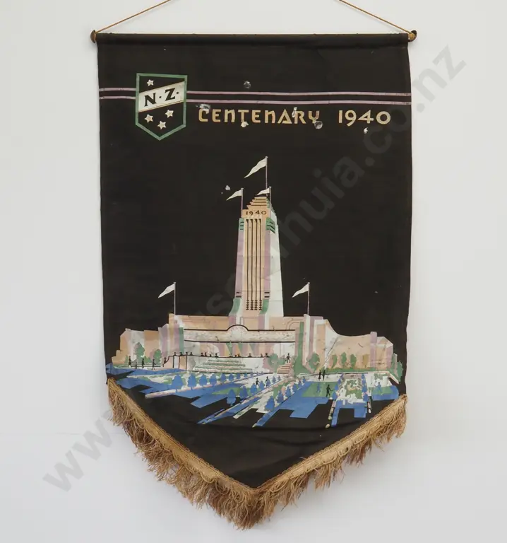 Vintage New Zealand 1940 Centenary Banner w Fringe