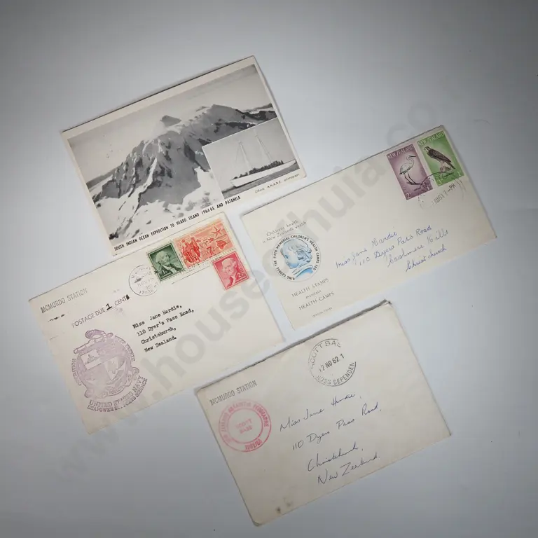 Lot Of Three Antarctic Envelopes w Contents & One Postcard
