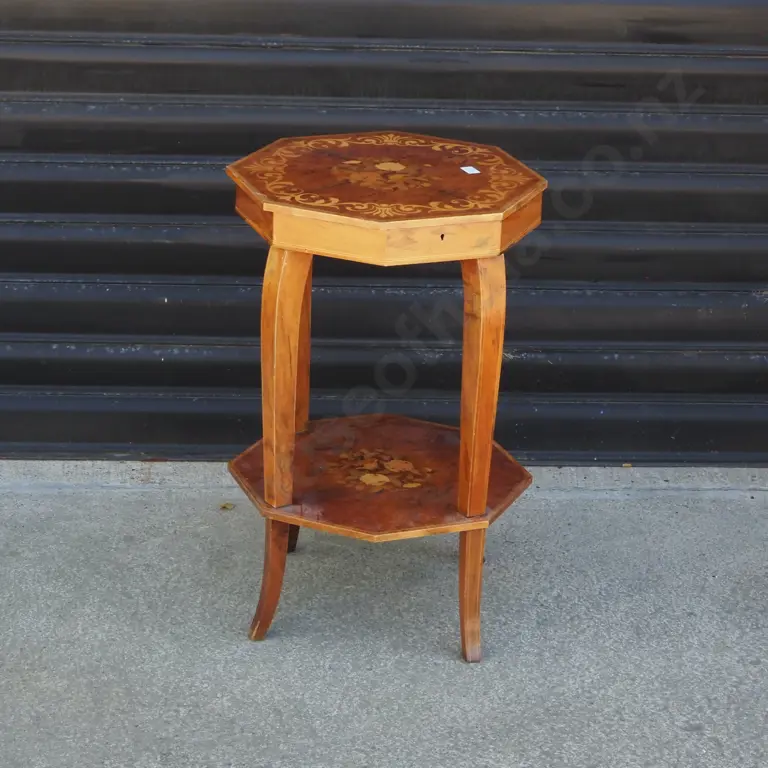 Vintage Italian Octagon Two Tiered Marquetry Music Box Table