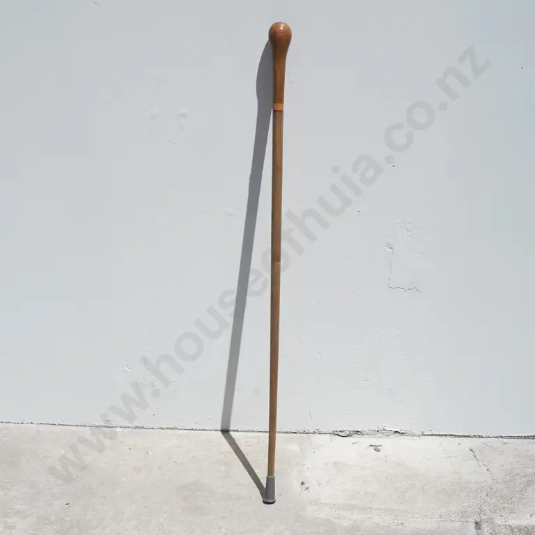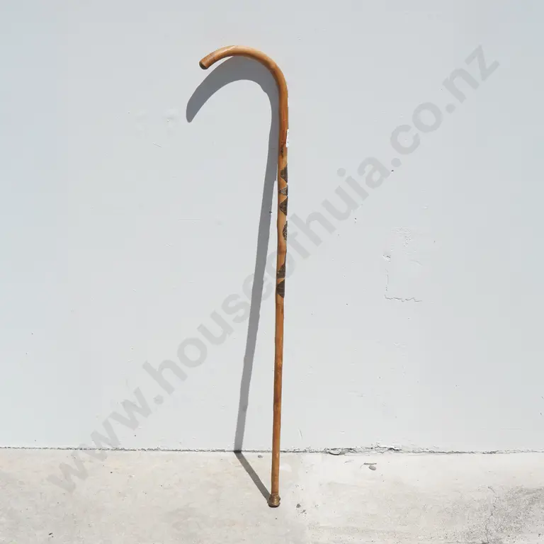 Wooden Walking Stick w Inlaid Handle of New Zealand Woods & Metal Trim