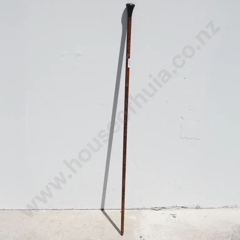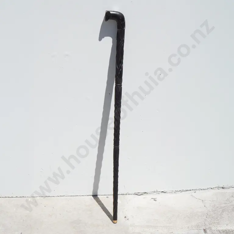Wooden Ebony Carved Walking Stick w Bone Trim