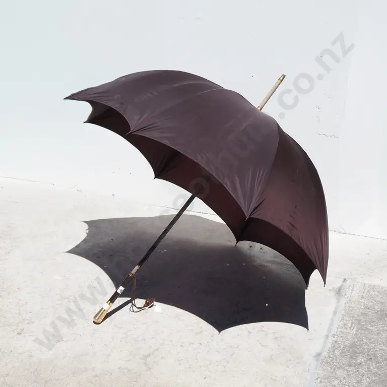 Elegant Vintage Umbrella w Hammered Brass & Elephant Ivory Accents
