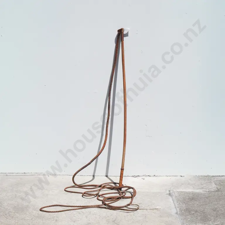 Vintage Leather Stock Whip Feet Long Bamboo Wood Handle