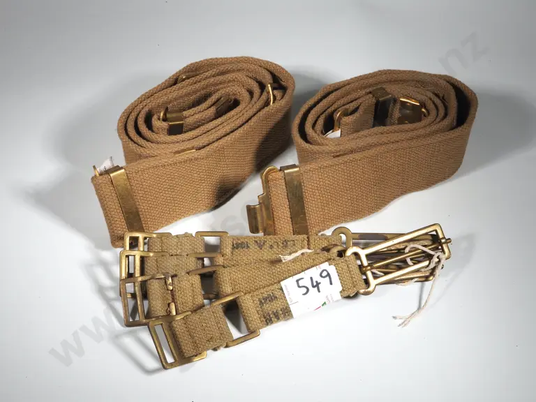 Two Reproduction Webbing Belts & Four 1941 Dated Brace Attachements Estimate: $40 - $60