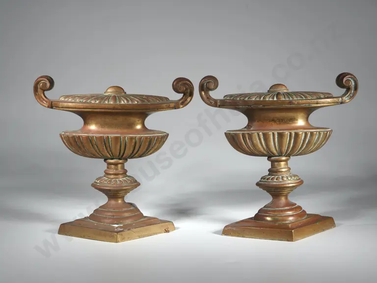 Pair Of Antique Urn Shaped Brass Andirons/ Fire Dogs Estimate: $150 - $300