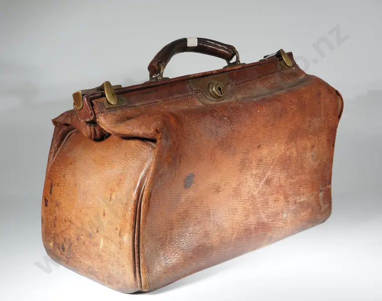 Vintage Large Leather Gladstone/ Doctors Bag w Brass Fittings Estimate: $40 - $80