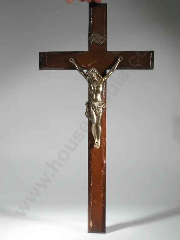 Crucifix With Wooden Cross & Spelter Christ (A/F) Estimate: $40 - $80