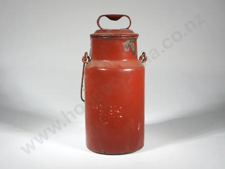 Vintage Brown Enamel Milk Can with Single Side Handle Estimate: $40 - $80