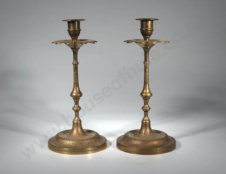 Pair of Benares Brass Candlesticks Estimate: $20 - $40
