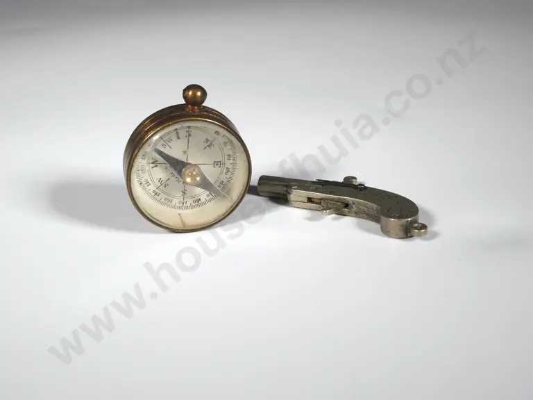 Vintage 1950s Miniature Berloque Pistol 2mm Toy Charm w Pinfire & Engraved Deer & Rabbit & A Small Vintage Compass Estimate: $40 - $80